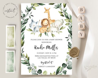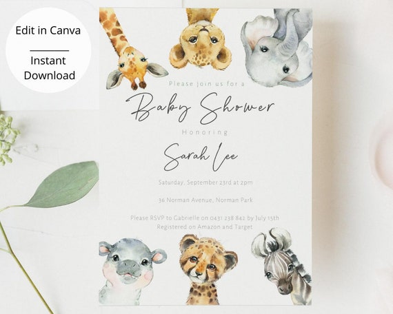 Planning an event is not an easy affair, what with so many things to be taken care of. Safari jungle animals modern baby shower invitation. Perfect for a girls baby shower, boys baby shower or gender neutral baby shower. Safari baby shower invitations are decorated with lions, elephants, giraffes, monkeys etc. .baby shower invite, safari animals baby shower party, boys zoo birthday invite, zoo baby shower :